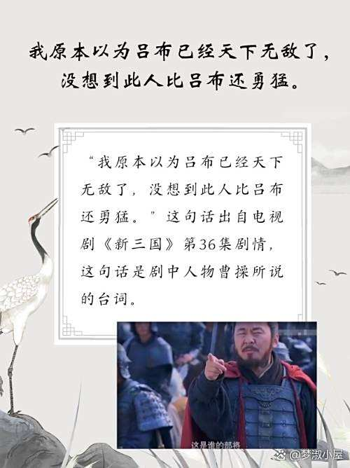总之正史有时比演义更夸张,曹老板的剧中台词大可改为:“我原本以为吕布已经天下无敌了,这是谁的部将?”——“天神六丁玉女是也!”