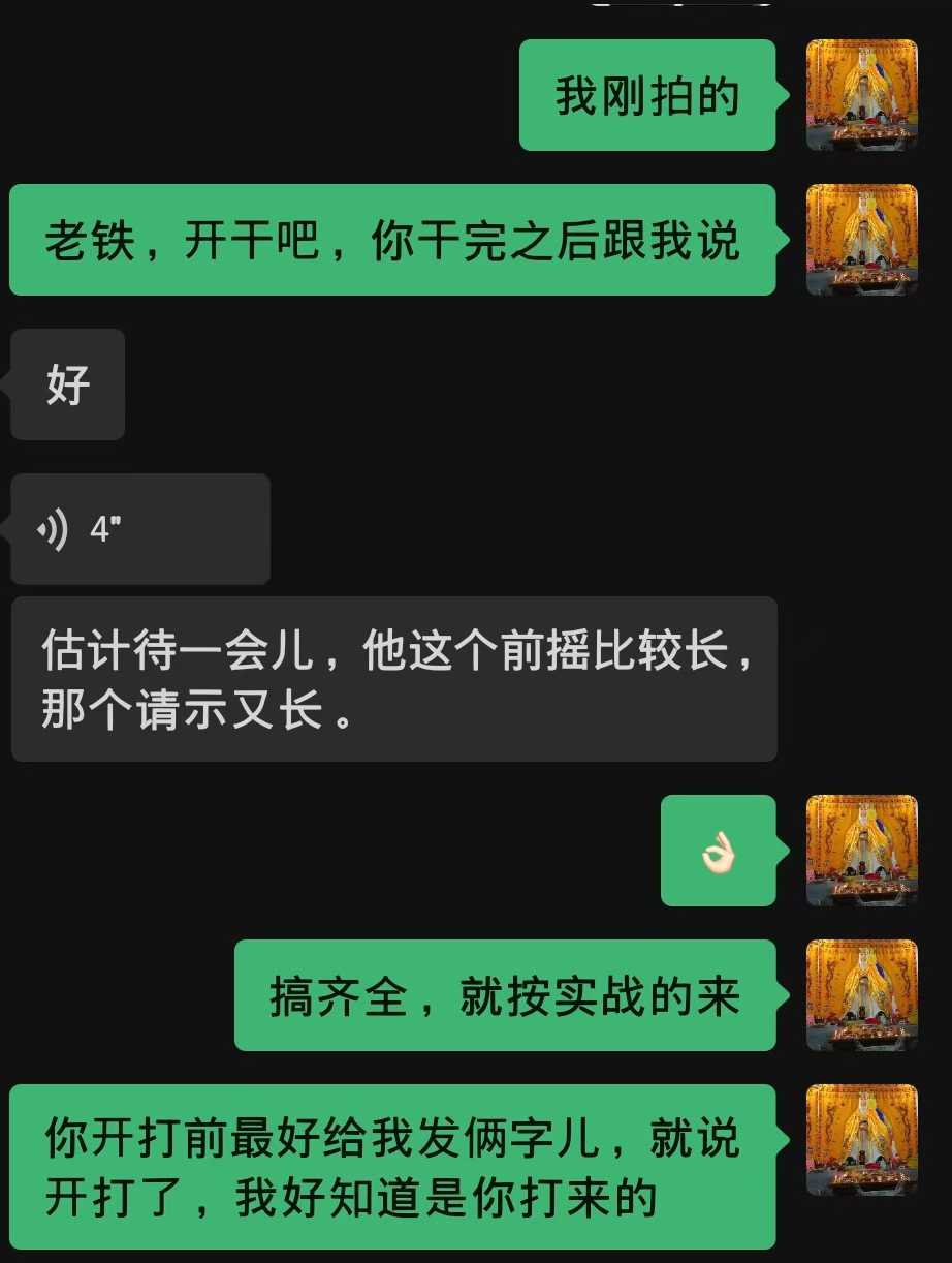 由于是老熟人,双方的信息都比较熟悉了,咱随手发个现拍的照片就开始了,以下是陪练过程。