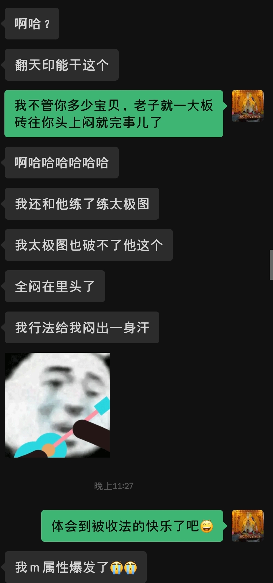 刚听闻上海学员K找咱们另一位学员X陪练武法时,被X一招大封禁隔山打来,然后当场就连五雷掌都放不出来了。。。看到K如此涨了经验,咱简直太开心了(*^▽^*)。
