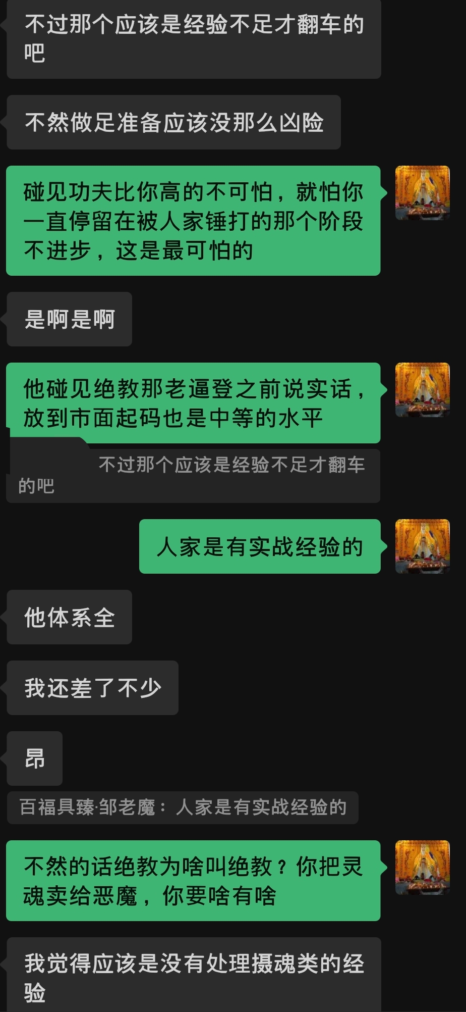 上图提到的学员X斗绝教差点丧命,点击查看《收斩绝教老邪师之俩徒弟险些丧命》,写于数年前。