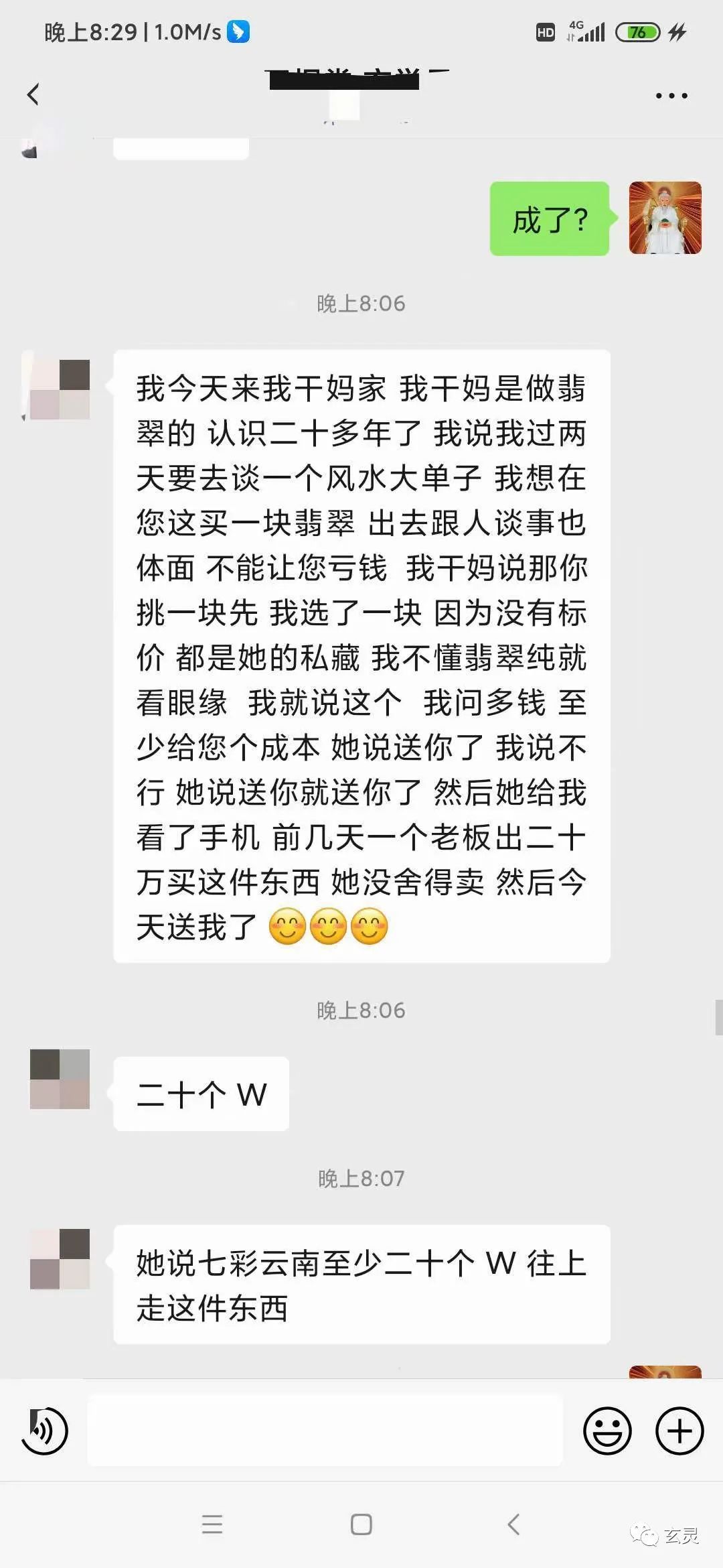 ②紧接着又被干妈免费送了一块30万元起步价的翡翠之七彩云南。