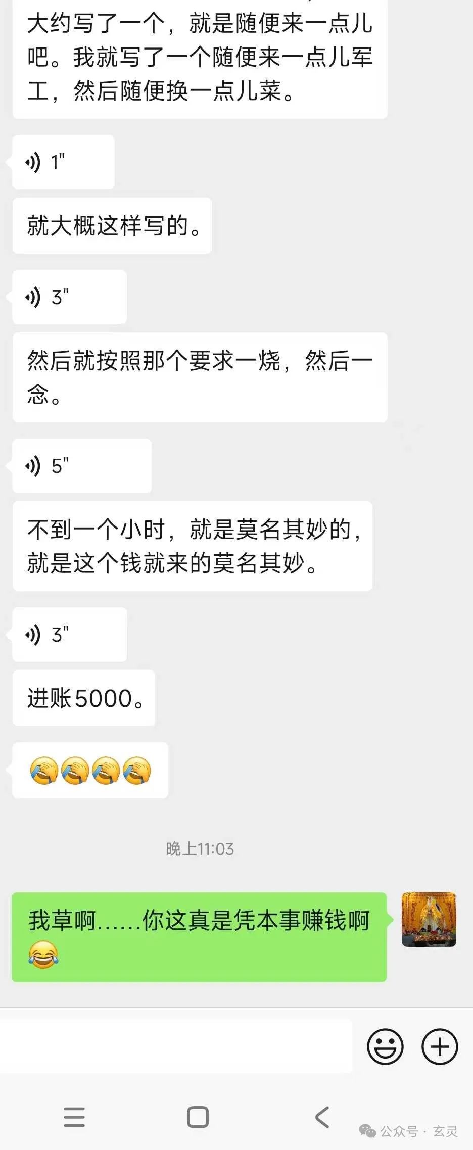 ①才二十岁出头的学员老J今天用区区卫生纸+碳素笔写的超简易疏文,大概写了自己的一两个公益打邪案例去申请军功化财,不到1小时进账5千。 而且进账理由特别特别牵强,宛如人家追着给你送钱---三年前的老板跑来给他这位前员工发钱