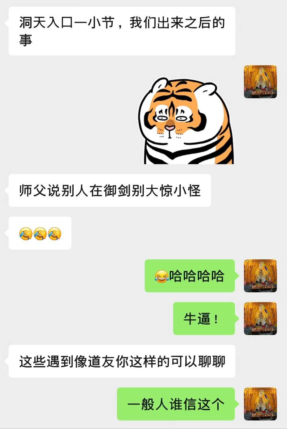 后来咱和颜老铁私下聊了不少。比如用各家的伤人法互相陪练,一个用纯法术,一个用丹道内劲,互相打来打去却发现谁也打不动谁,这事儿咱还发朋友圈了。