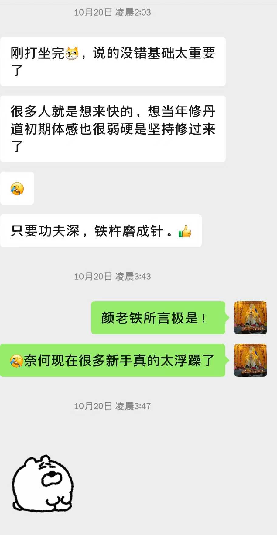 话说颜老铁十几年前开始修丹道,也是从小白入门走到今天,如图: