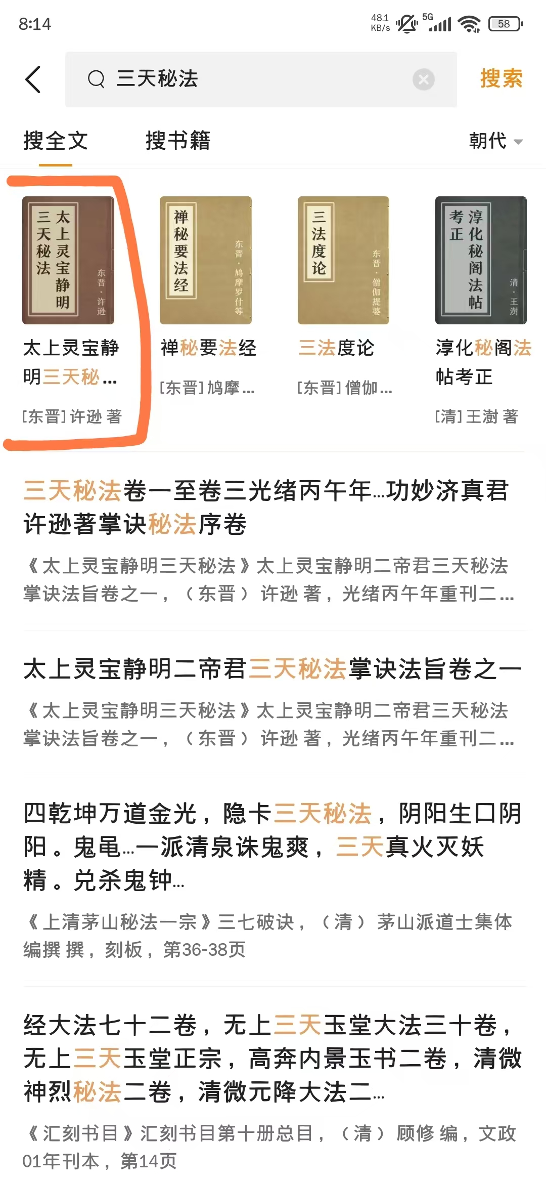 或在各大APP平台下载识典古籍官方app,软件内搜索三天秘法点击访问即可,如图: