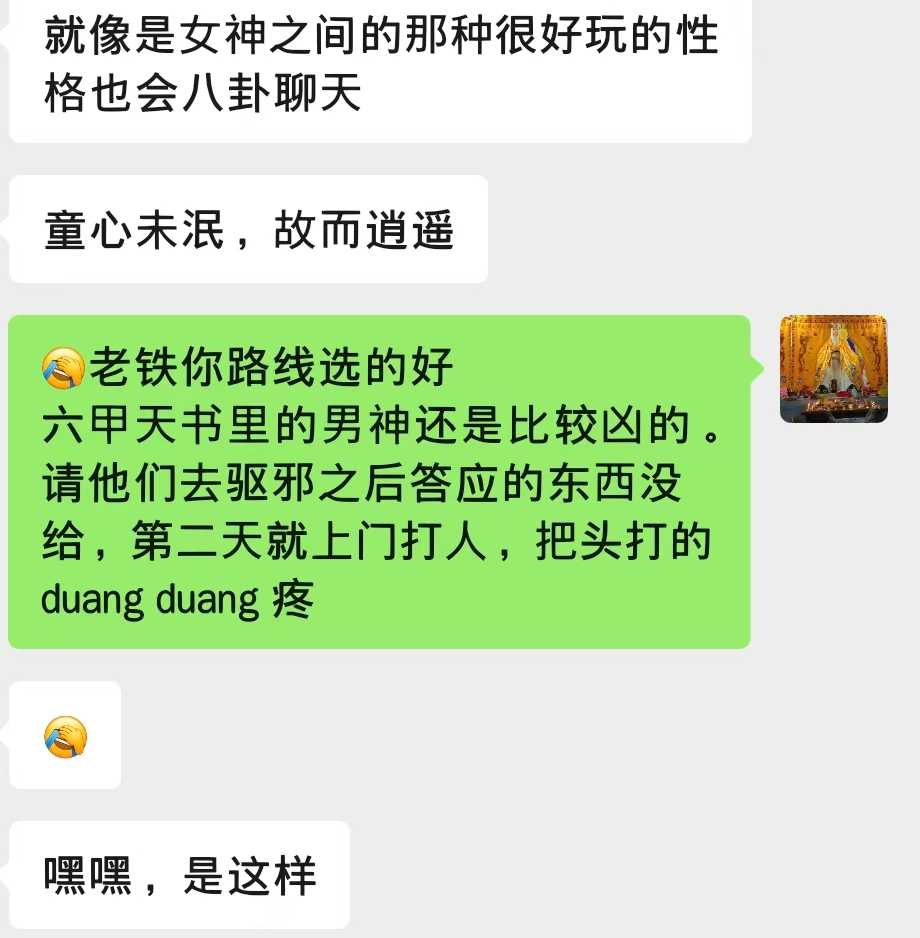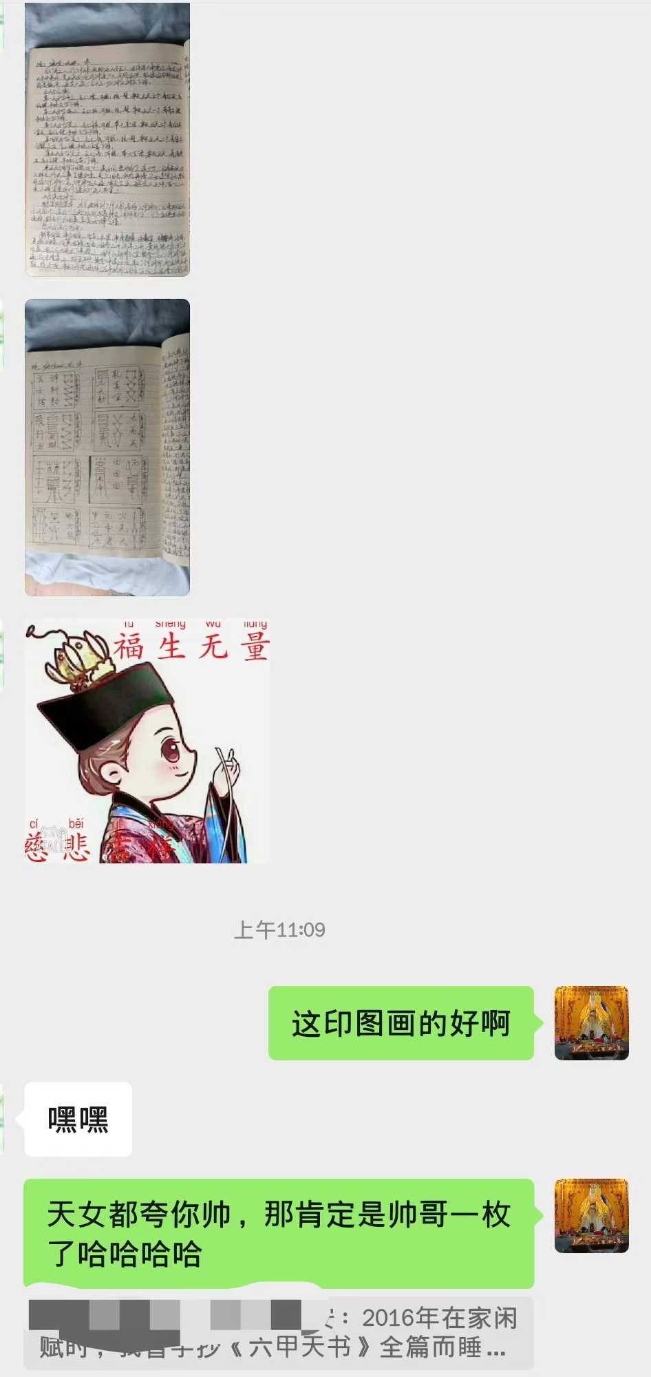 总之目前咱认为:各家天书体系,似乎女神比男神更平易近人。至少咱虽然被《六甲天书》中的六甲神捶过、却行使《琅琊天书》中的六丁法很好使。无独有偶,下面这位老铁用《六甲天书》中女神有关的咒、似乎也比较容易感通(前提是他长得帅):