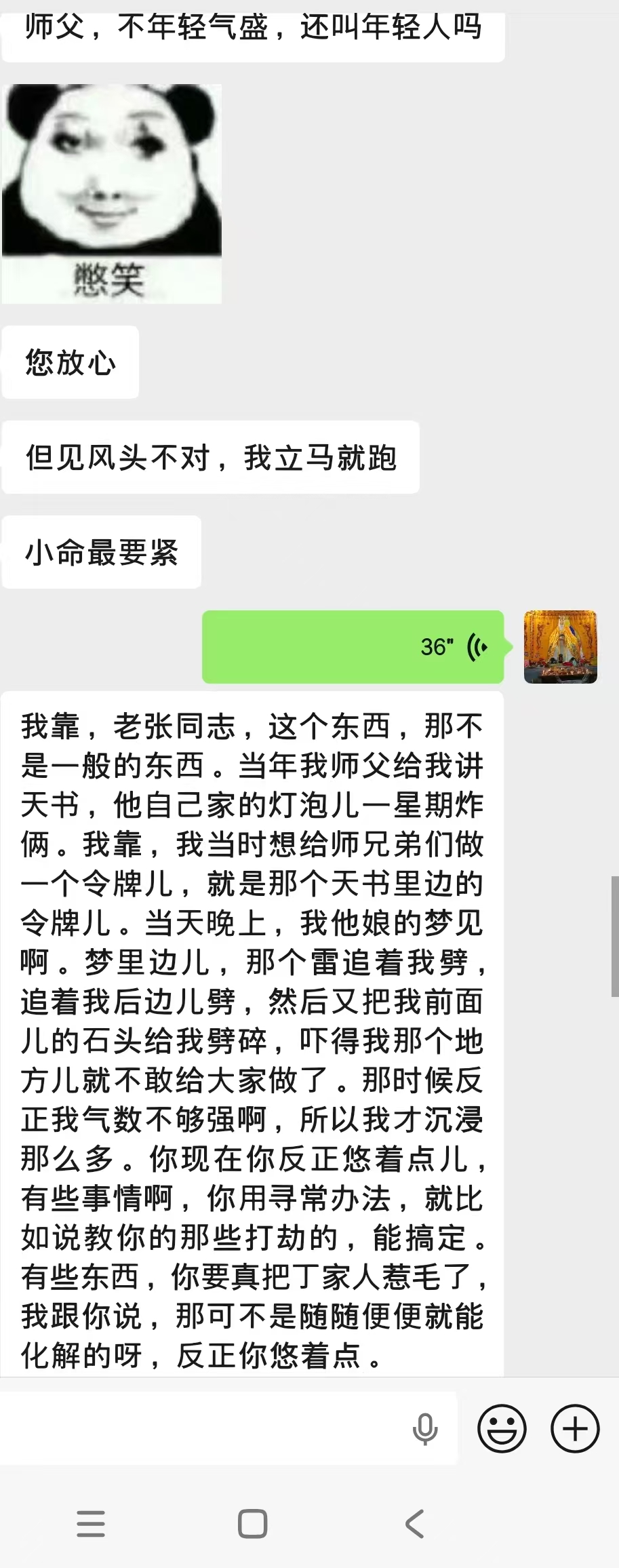 恩师的基础很好,所以当时他研究《六甲天书》已有所小验。可将近10年前的咱哪儿有这根基?以为上去修就完事儿了,谁曾想:请《六甲天书》里的丁甲神去驱邪之后、由于答应的供养给慢了。第二天就被上门打人,把咱头打的duang duang 疼,就跟闷棍直接打人似的、物理意义上的疼。 然后咱赶紧把答应的东西供上,从此不碰《六甲天书》,将近10年至今也没再碰过了。