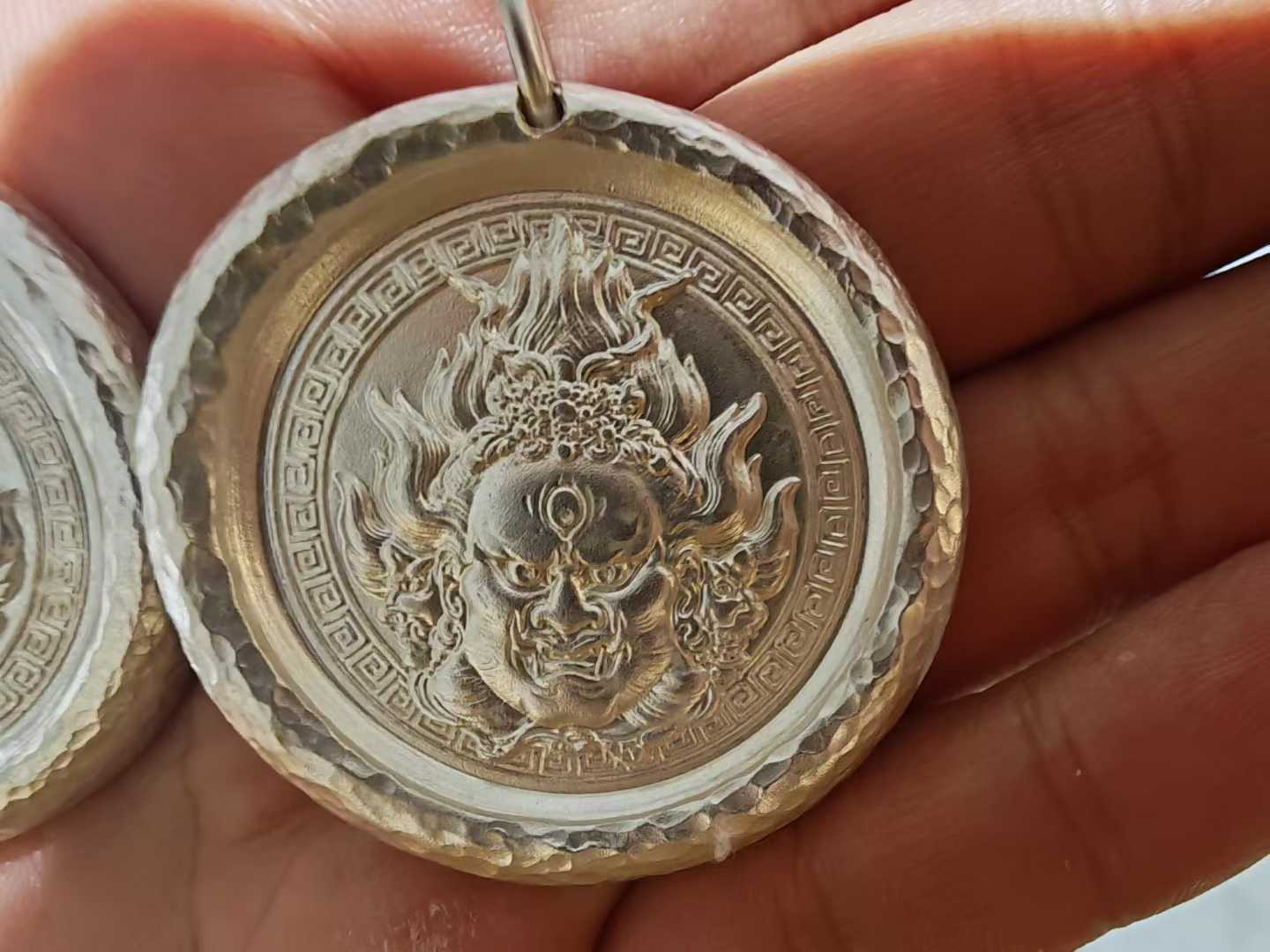见惯了黄财神,大黑天,可有人见过道门天蓬?市面第一个道门题材银饼之天蓬元帅。采用古银(受香火几百年古银神像,古代银质的法器和山鬼钱熔炼)打造并以天蓬法祭炼,乃货真价实的辟邪神器。数量不多,欢迎咨询。实物图如下: