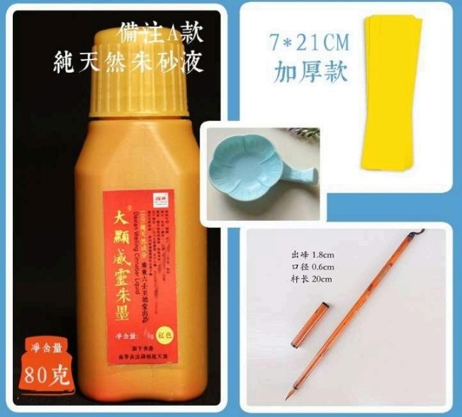 ③朱砂液一瓶、新毛笔一支。