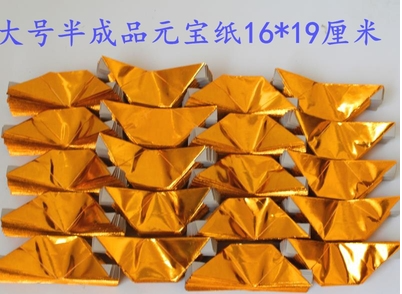 ①纸元宝,用长宽10*13cm、16*19cm等等市面流通的N种尺寸规格的长方形金色元宝纸,经人工或机器折叠而成的纸元宝皆可使用。