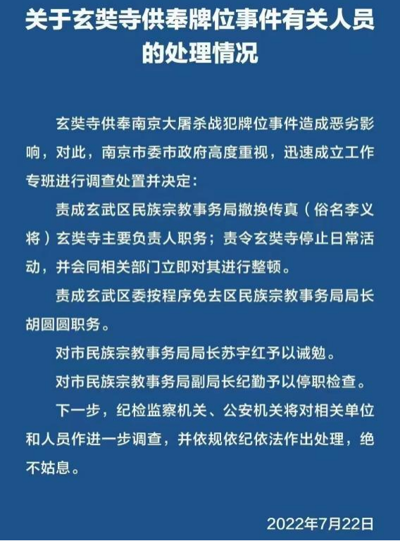 后续一、清剿10天后的7月22日左右,爆出了全国气愤的南京寺庙供奉战犯: