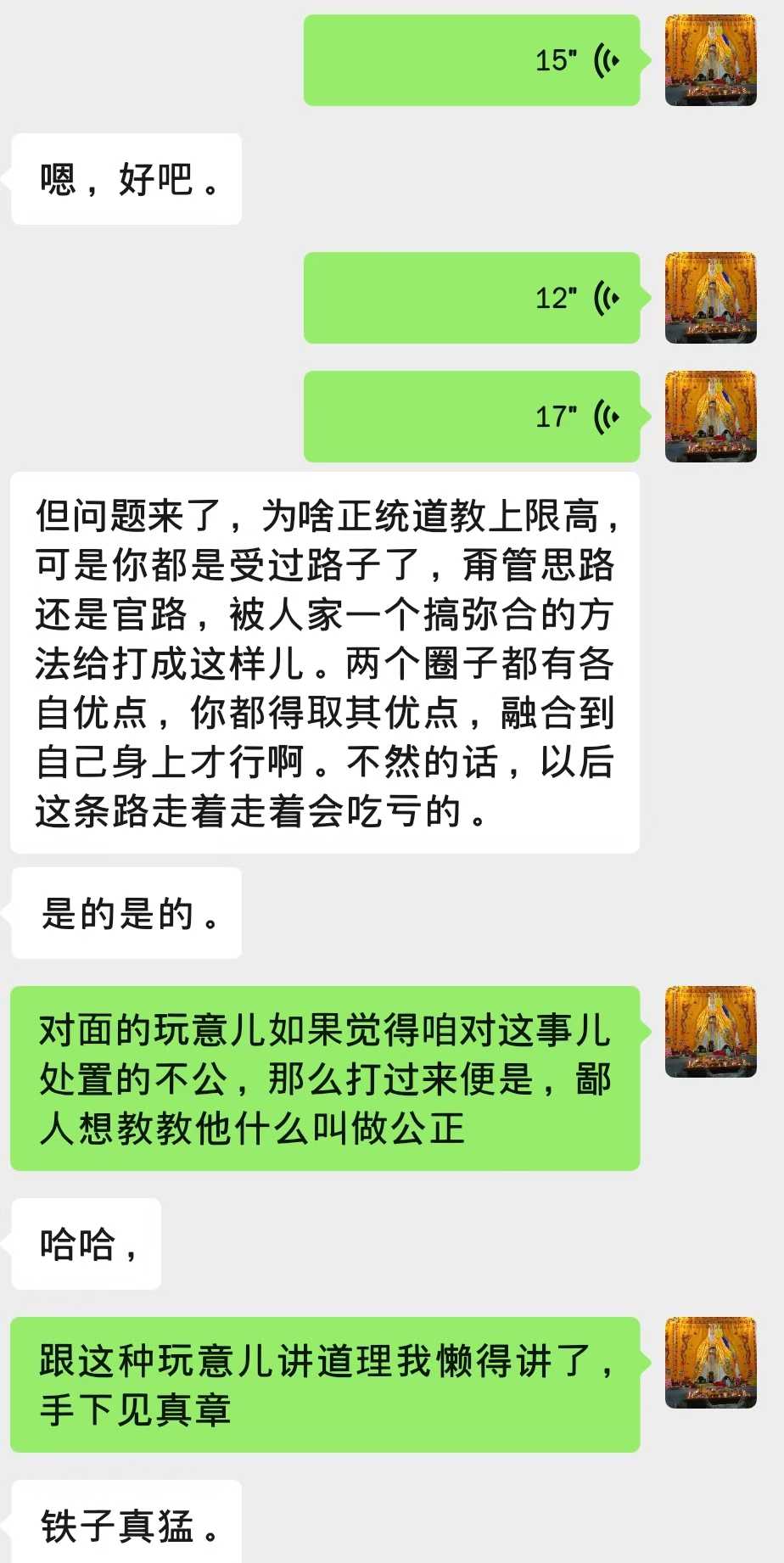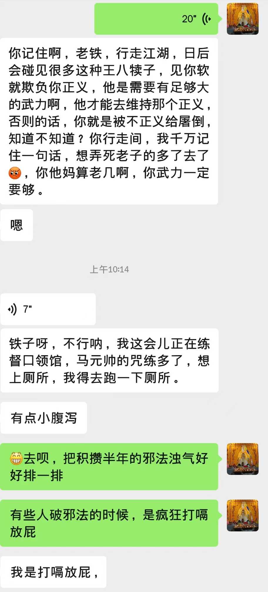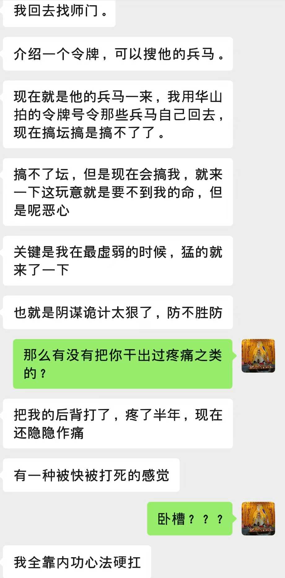 咱听了表示——好的,我查他大爷的,先怼了再说。今天老夫就教教这群王八犊子什么叫做公正????他大爷的毁人家庭不知悔改在先,还敢如此打伤我们道友????当场祭起玉皇玉如意对A哥扔过去连续破法20分钟,期间A哥全身发热出汗+不停放屁打嗝+最后是腹泻去厕所拉了一泡,终于后背顺畅多了。如下: